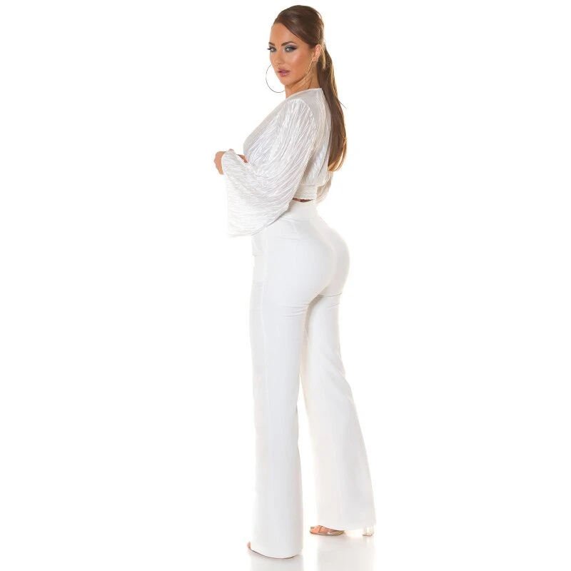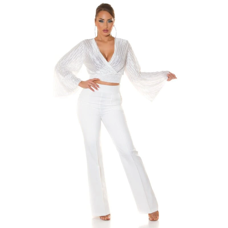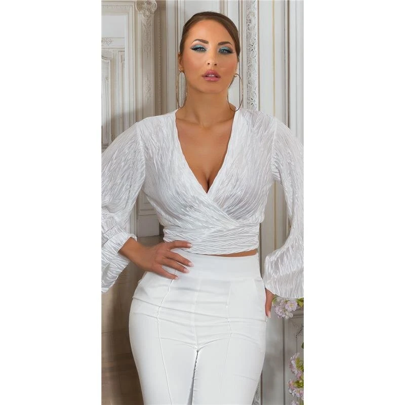 - Elegante bauchfreie Damenbluse aus glänzendem Satin mit All-over Knitter-Look
