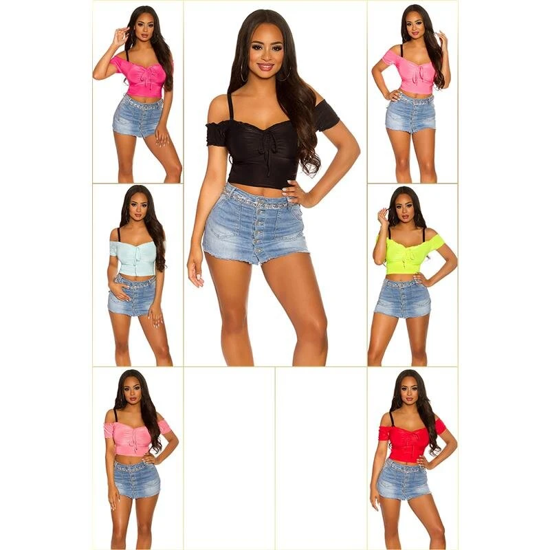 - Bauchfreies Damen Off-Shoulder Top in Latina-Style