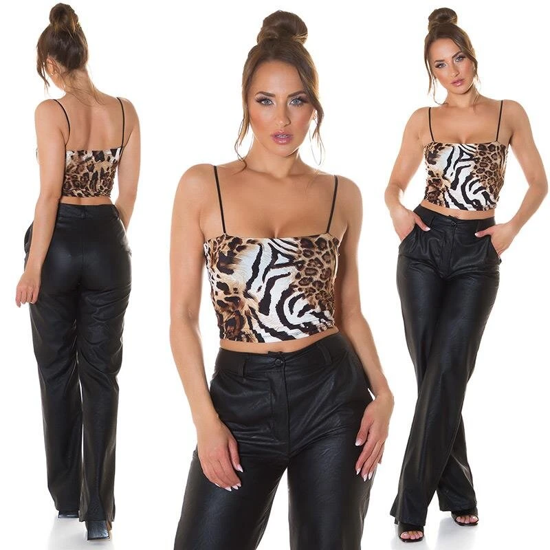 - Süßes bauchfreies Damen Crop-Top mit Animalprint in Tiger-Optik