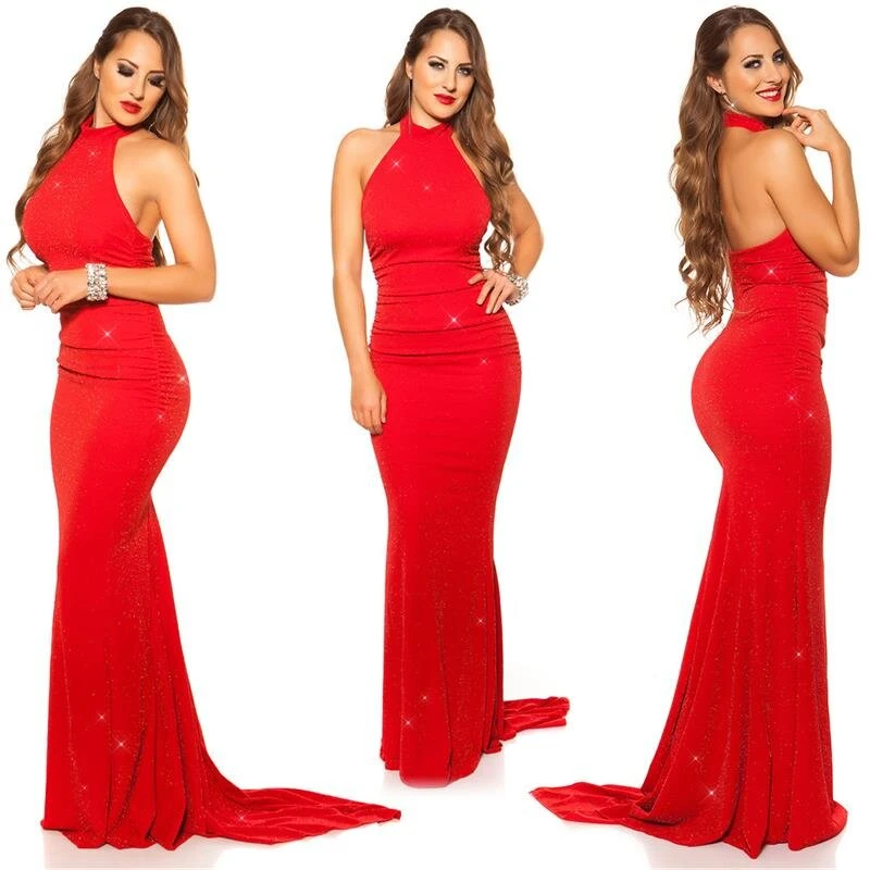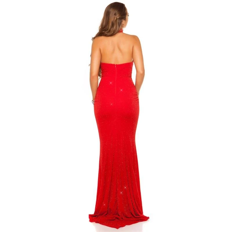 - Festliches bodenlanges Abendkleid in aufregendem Red-Carpet-Look mit Neckholder-Ausschnitt