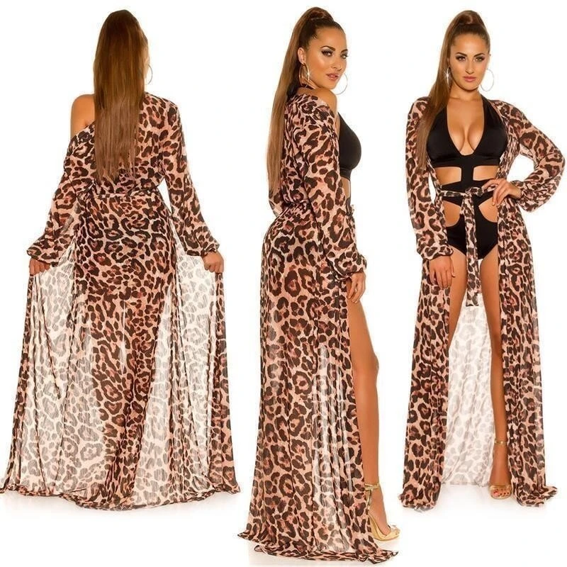 - Traumhafter, langer Damen Strand-Kimono aus transparentem Chiffon mit Animalprint