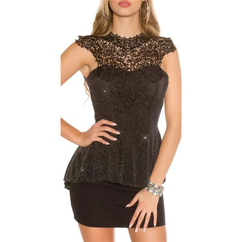 - Exklusives, tailliertes Damen Glamour-Top mit Schößchen und eingearbeiteten Glitzerfäden