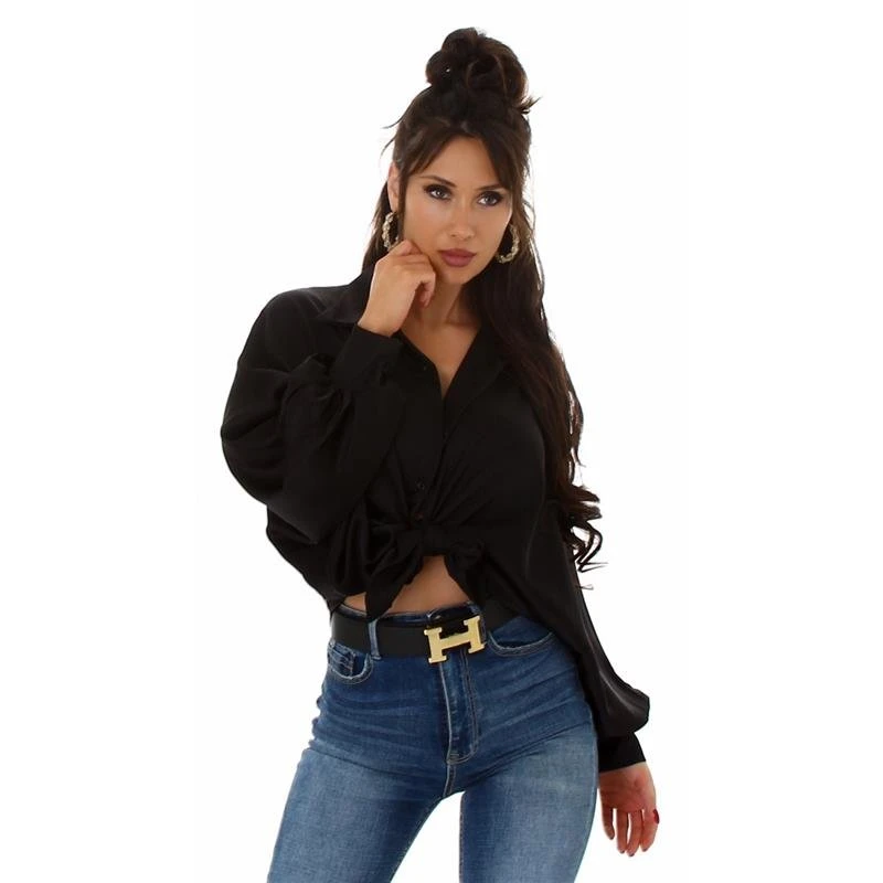 - Elegante Damen-Wickelbluse aus glänzendem Satin mit langen Fledermausärmeln und spitzem Kragen