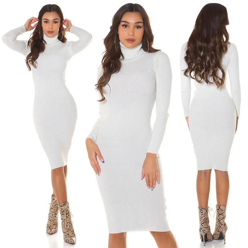 - Elegantes knielanges Damen-Strickkleid aus modischem Rippstrick mit Rollkragen und langen Ärmeln