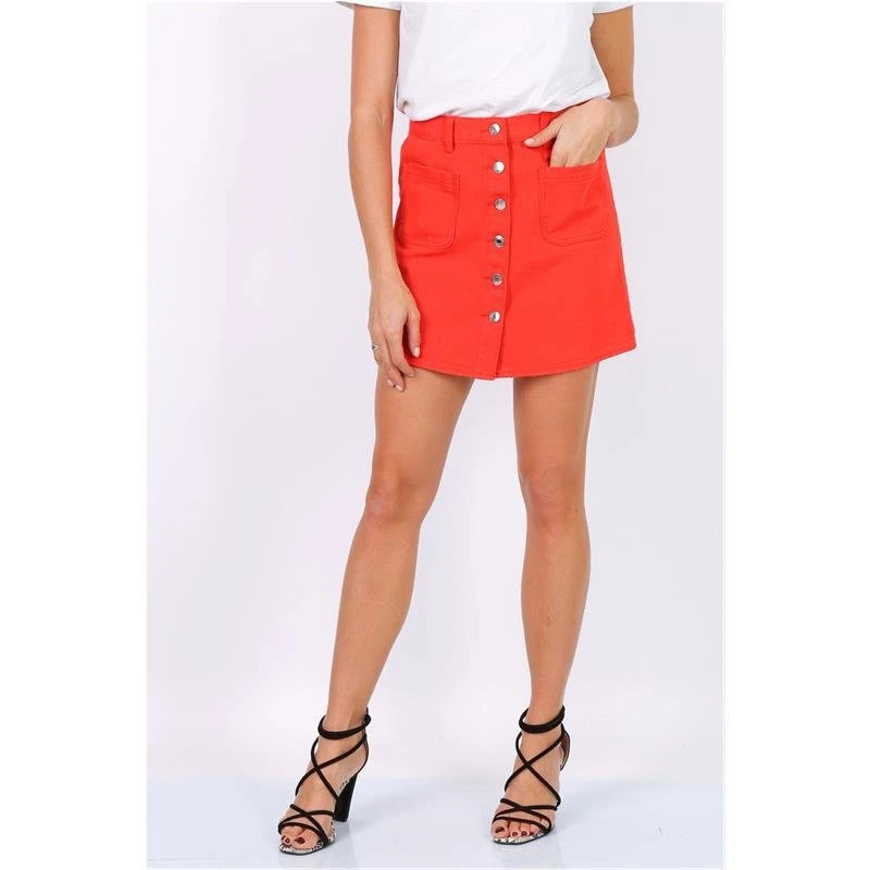 - Sexy eng anliegender Damen Jeans Minirock mit silberfarbener Knopfleiste an der Vorderseite