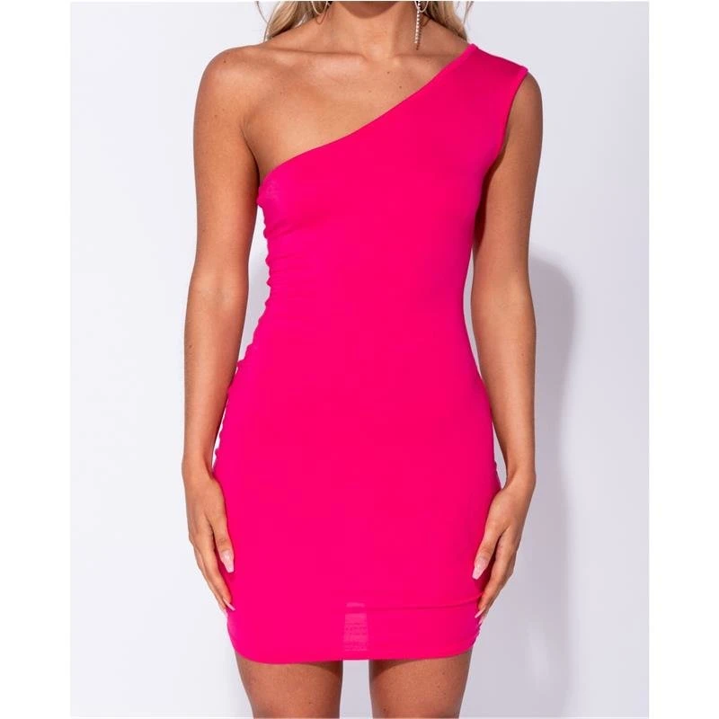 Figurbetonendes Damen One-Shoulder Bodycon Minikleid Pink
