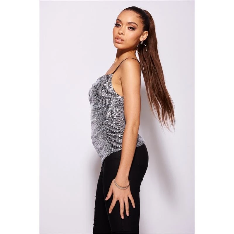 - Atemberaubendes Damen-Top rundum mit glamourös funkelnden, einzeln angenähten Pailletten