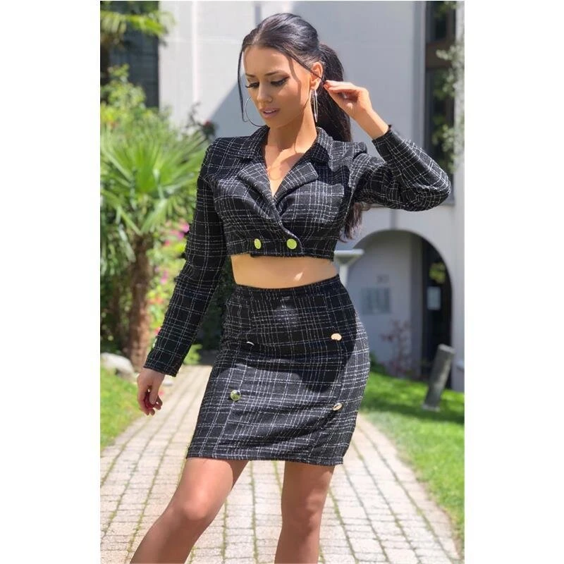 - Eng anliegender Damen-Minirock kariert mit strukturierter Oberfläche in angesagtem Bouclé-Look