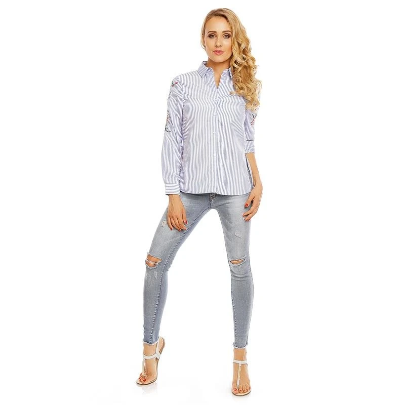 - Trendiges Streifenmuster und Blumenstickereien an den Ärmeln