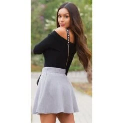 Trendiger Damen Highwaist Herbst-Rock In A-Linie Grau