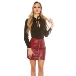 Sexy High-Waist A-Linien Minirock Aus Kunstleder Bordeaux