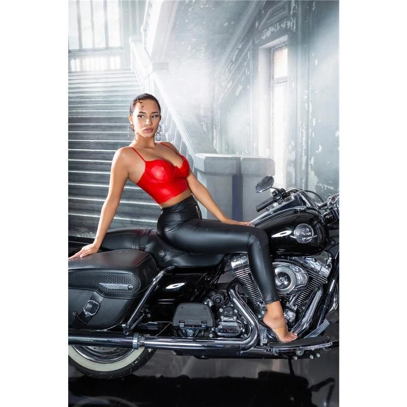 - Bauchfreies Damen-Bustiertop aus glänzendem Wetlook-Material