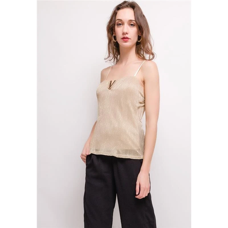 - Sexy Damen-Top aus halbtransparentem Glitzer-Stoff mit dünnen verstellbaren Spaghettiträgern