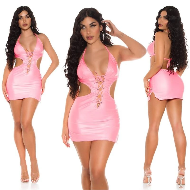 - Sexy Club-Minikleid in glänzendem Wetlook