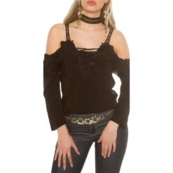 - Traumhaft schöne Carmen-Look-Bluse mit Trägern und langen Ärmeln