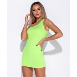 - Sexy One-Shoulder Rippstrick Minikleid aus angenehmem, halbtransparentem Stretchstoff