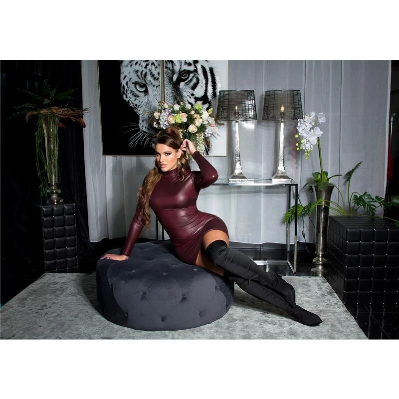 - Kurzes eng anliegendes Clubkleid in glänzendem Wetlook mit langen Ärmeln und Stehkragen