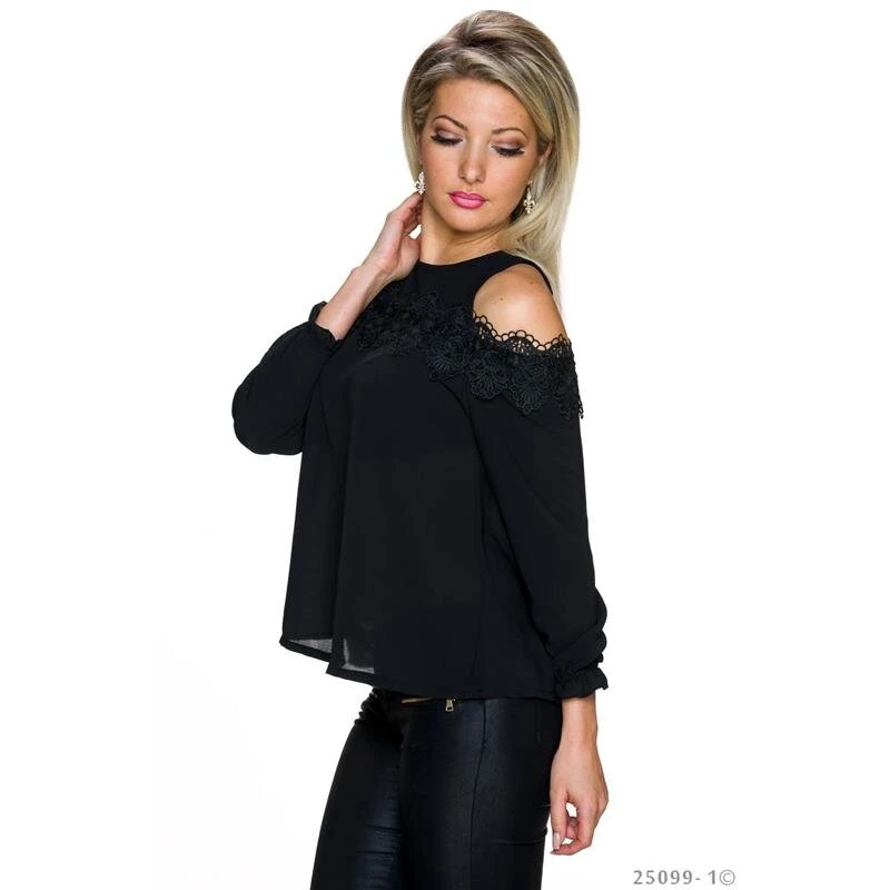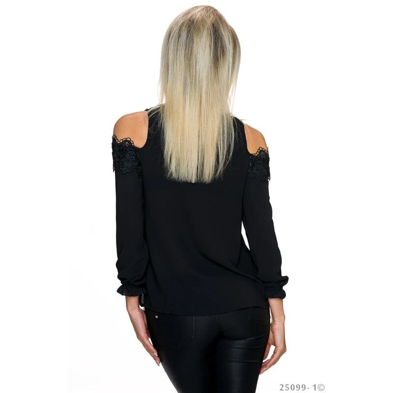 - Traumhaft transparente Cold-Shoulder Chiffon-Bluse mit leicht strukturierter Oberfläche